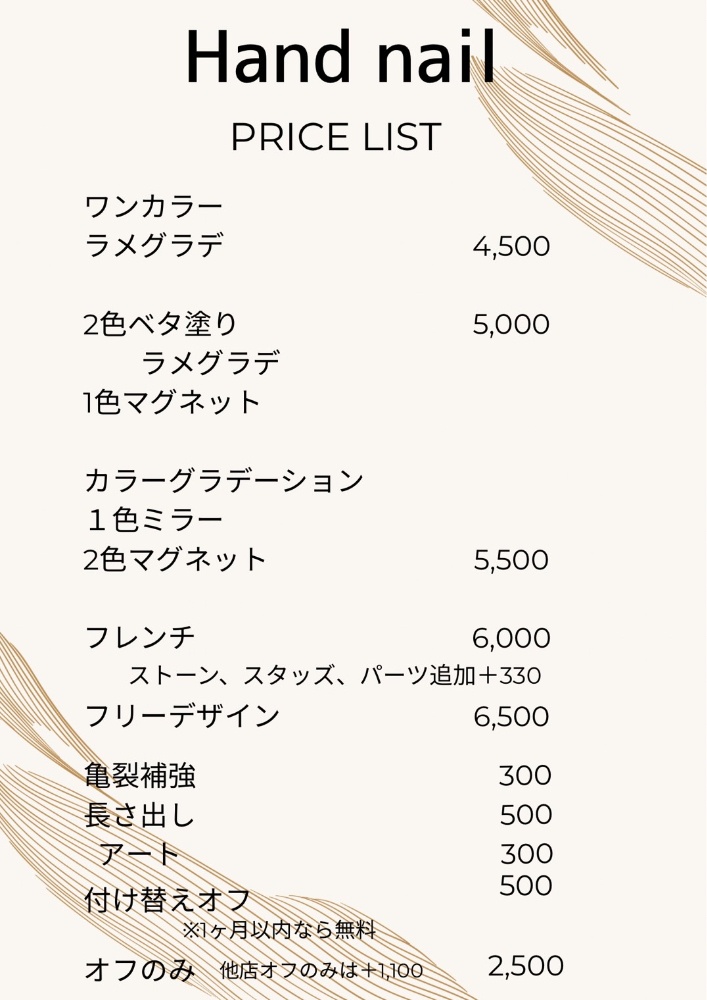 日常にほんの少しの幸せを癒しの空間でネイルで手元、足元に輝きをリンパマッサージで心と体のデトックスをさせていただきます